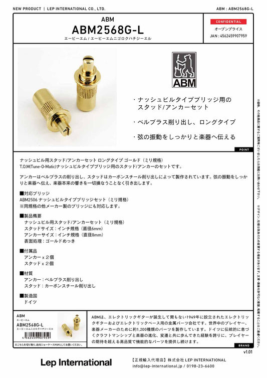 ABM - ABM2568G-L ナッシュビル用スタッド/アンカーセット ロングタイプ ゴールド(ミリ規格)