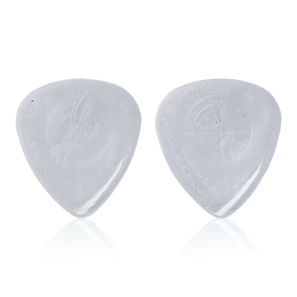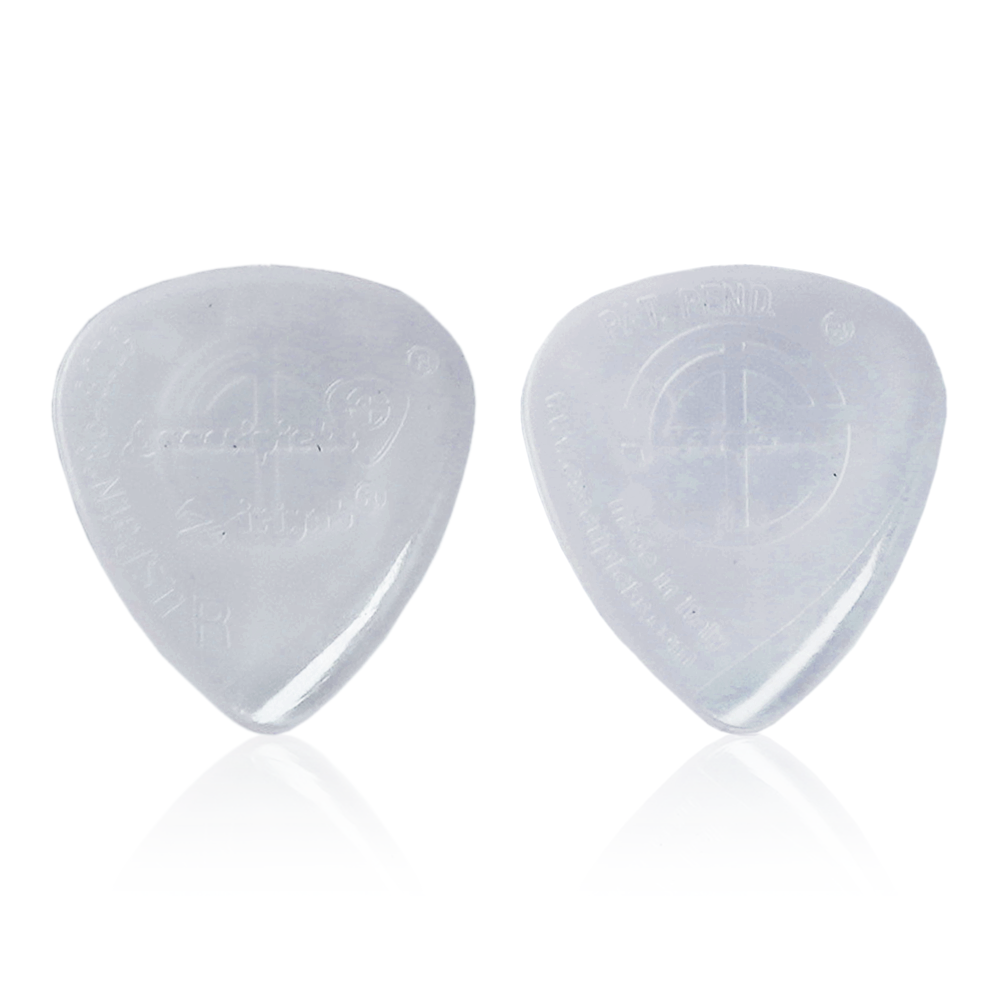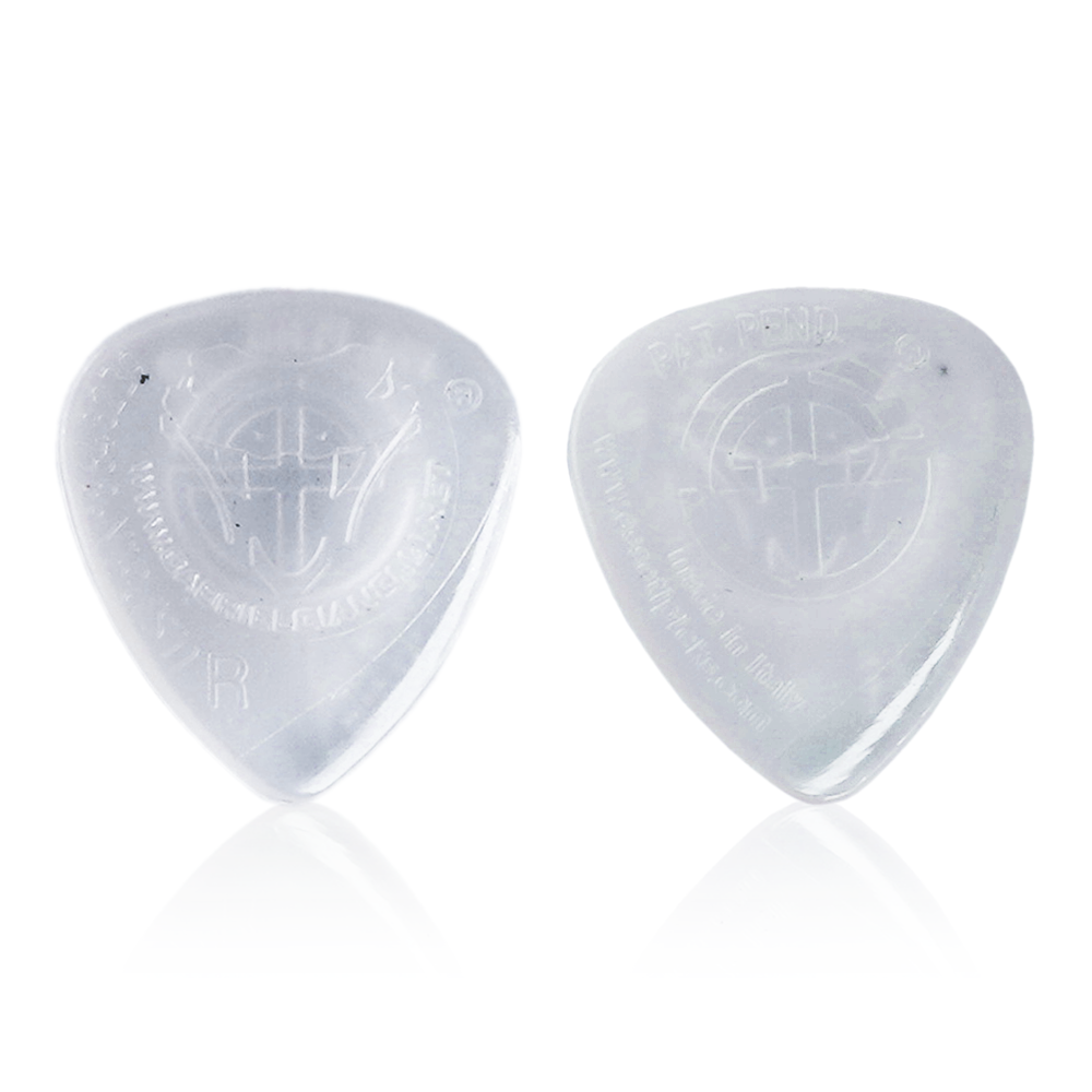 ナイロン素材の軽快さと独自の形状、なめらかなカーブにより弦にピックがひっかかることもなく、アップ、ダウン共に自然に弦の抵抗を受け流しながら、弦を確実にとらえます。