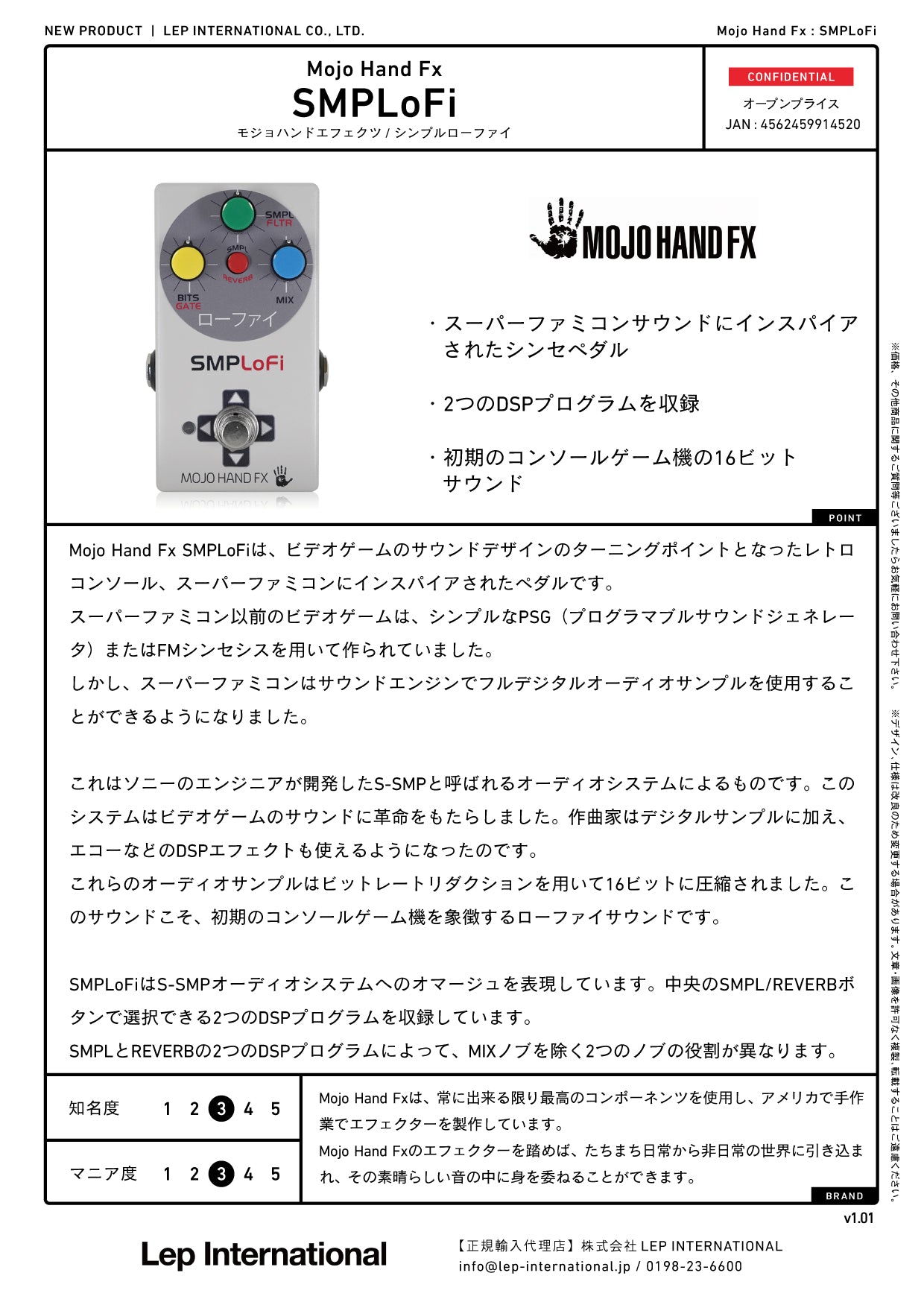 Mojo Hand Fx SMPLoFiは、ビデオゲームのサウンドデザインのターニングポイントとなったレトロコンソール、スーパーファミコンにインスパイアされたペダルです。