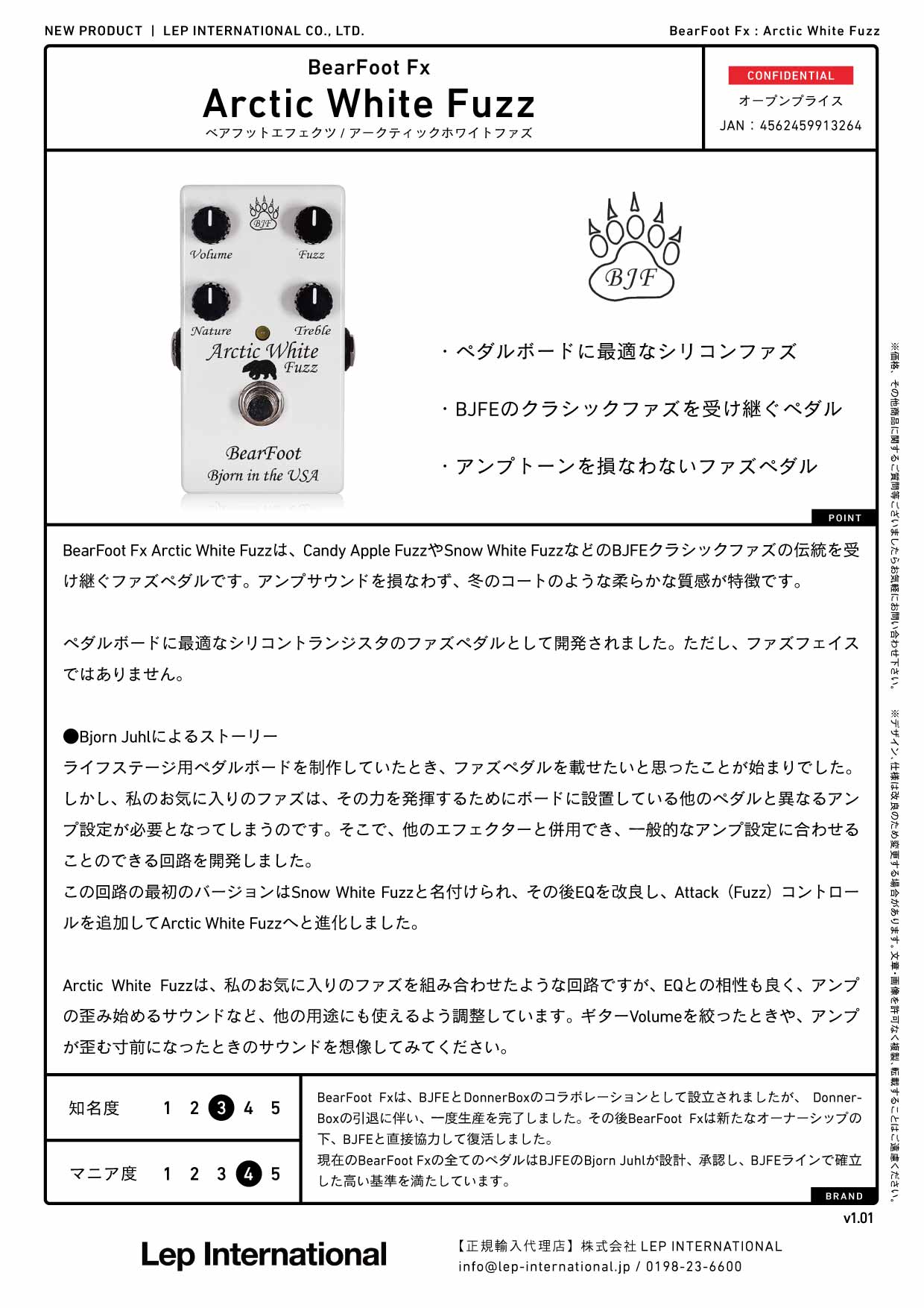 現在のBearFoot Fxの全てのペダルはBJFEのBjorn Juhlが設計、承認し、BJFEラインで確立した高い基準を満たしています。