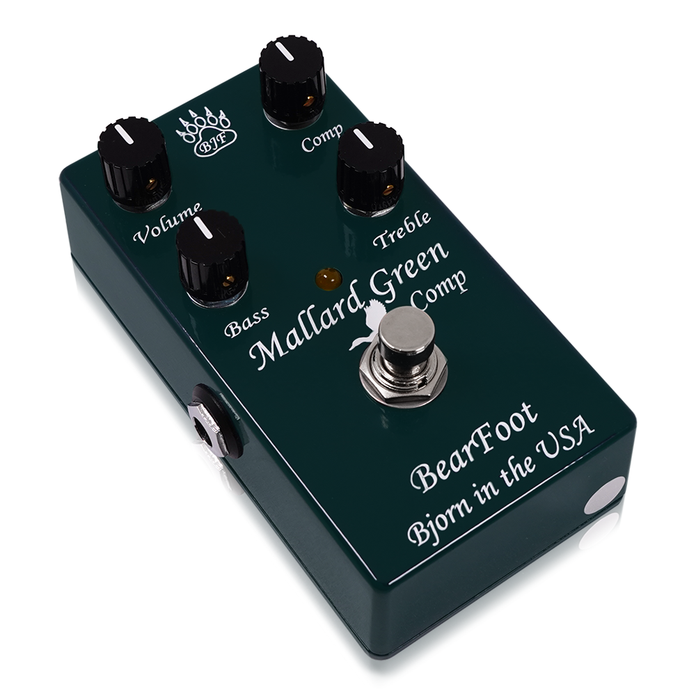 BearFoot Fx Mallard Green Compは、BJFEの人気コンプレッサーペダル、Pale Green Compをベースとし、プリBassとポストTrebleコントロールを備えたオプティカルコンプレッサーです。