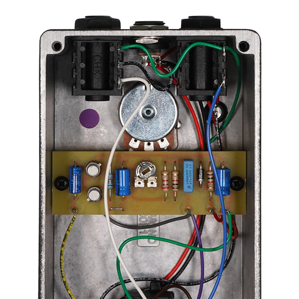 回路のセットアップ、トランジスタの選別やバイアス調整、組み立てから検査まで全てをデヴィッド・アンドリュー・メインが行っています。つまりD*A*M Stompboxesと同じ厳格な基準で製造されています。