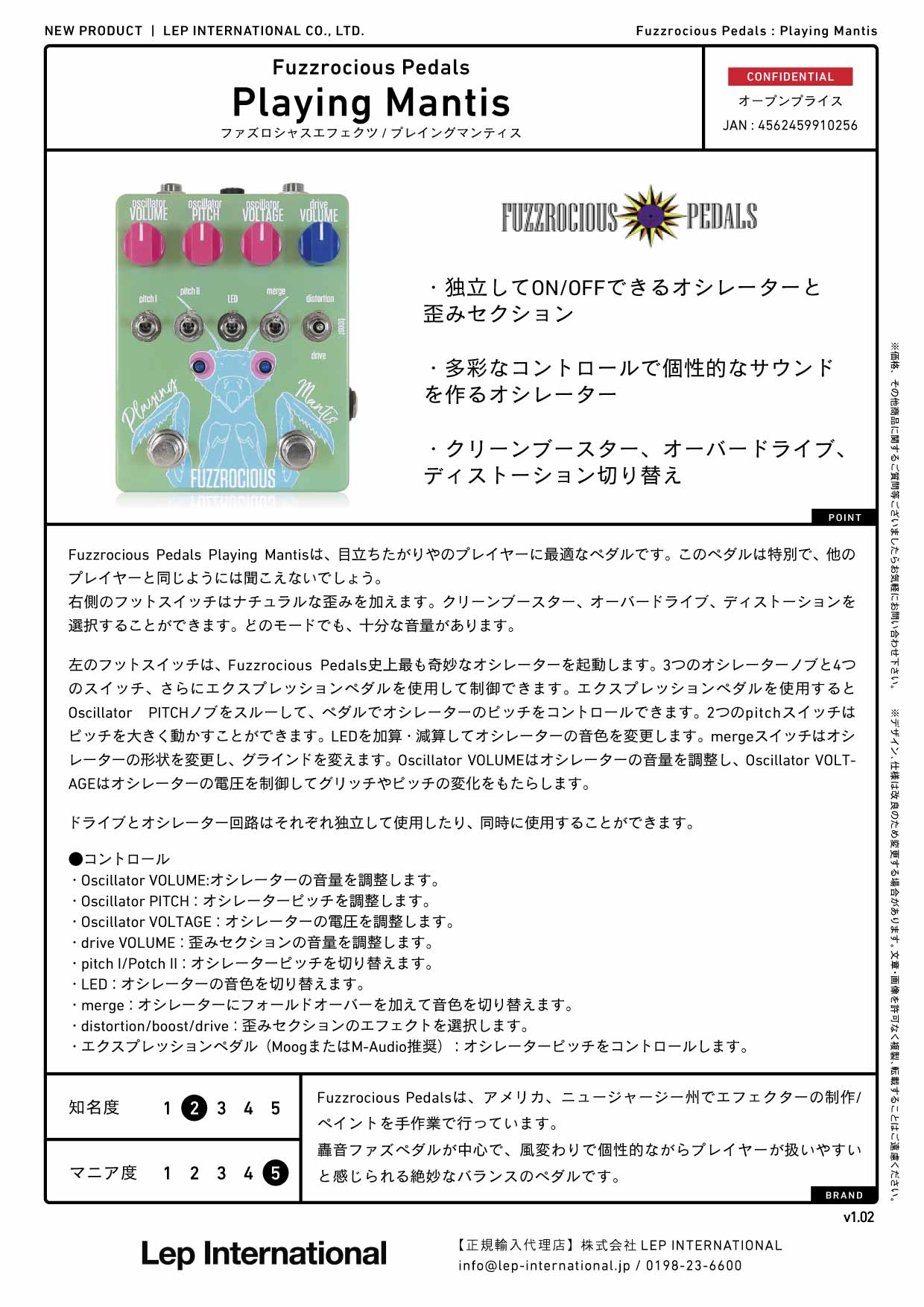Fuzzrocious Pedals Playing Mantisは、目立ちたがりやのプレイヤーに最適なペダルです。このペダルは特別で、他のプレイヤーと同じようには聞こえないでしょう。