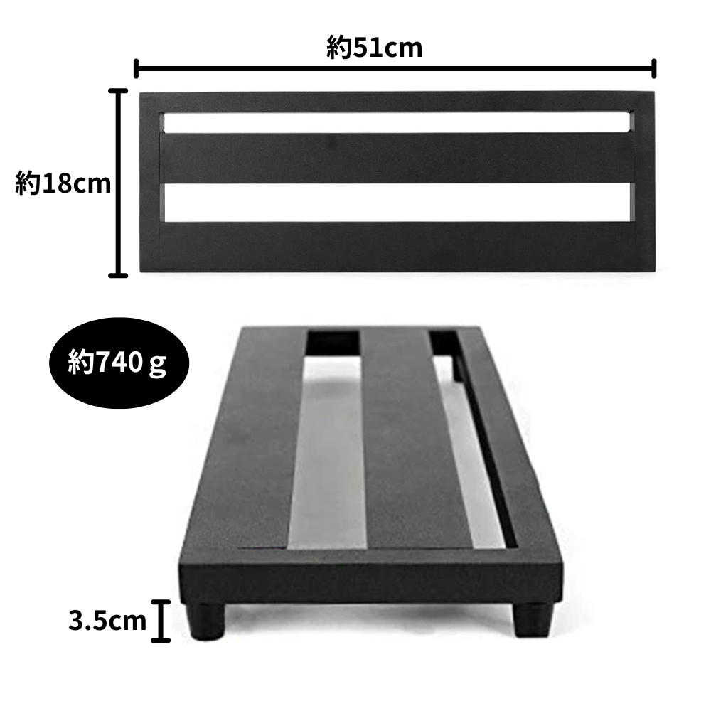 ボードサイズは約51×18cm、740gと軽量で、4~6個程度のエフェクターを設置することができます。