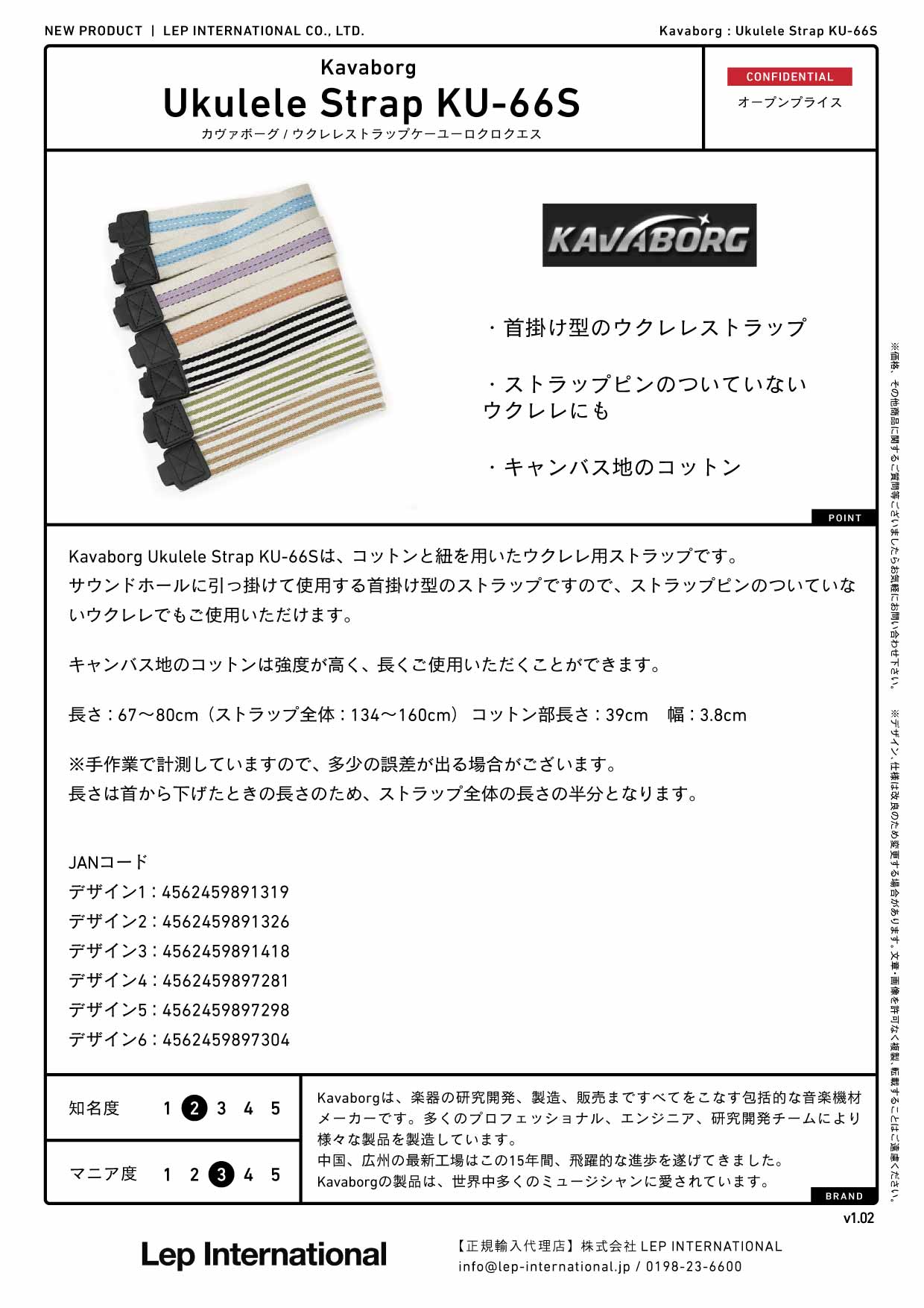 Kavaborg Ukulele Strap KU-66Sは、コットンと紐を用いたウクレレ用ストラップです。
