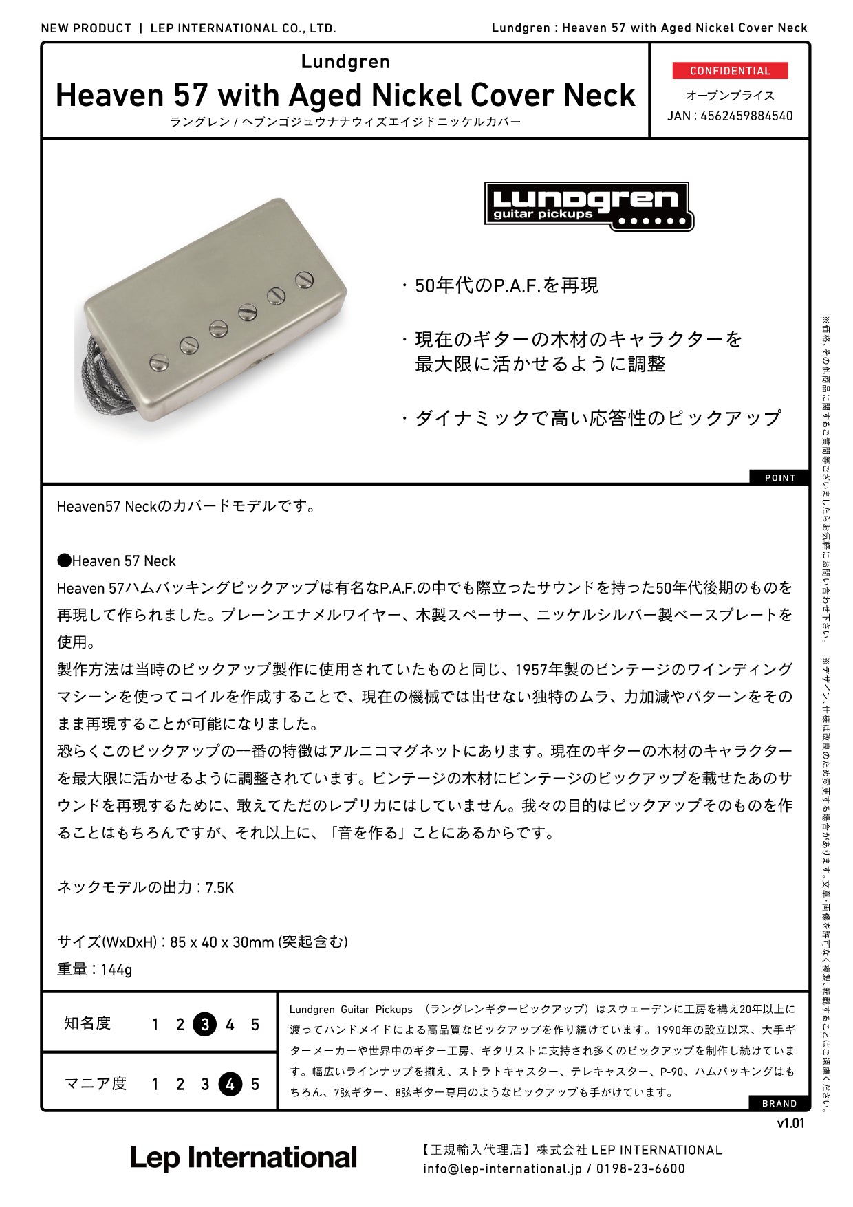 Lundgren Guitar Pickups / Heaven 57 with Aged Nickel Cover