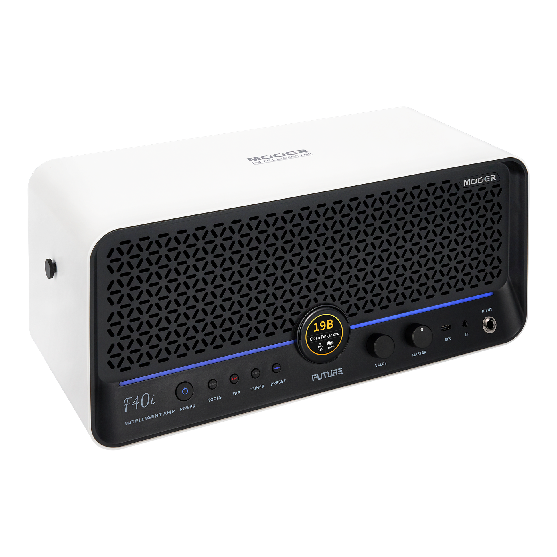Mooer F40iは、多彩なアンプモデルとエフェクトを組み合わせたトーンをアプリから設定して操作できるデスクトップアンプです。本体にタッチスクリーンを備え、快適な操作が可能。