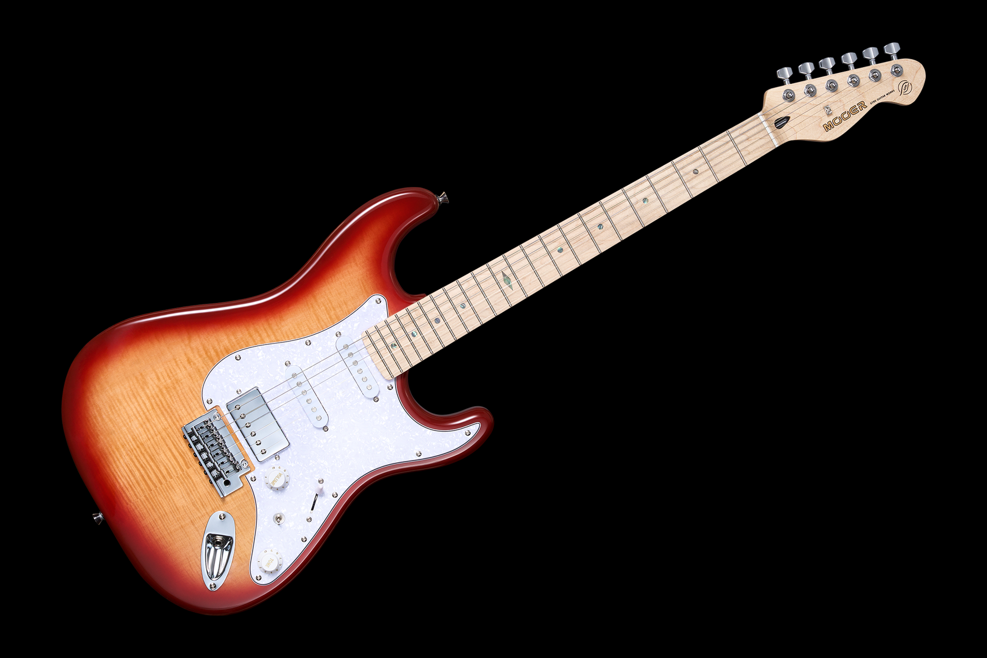・フレイムメイプルトップのポプラボディ、SSH配列のピックアップ(ハムバッカーはスプリットコイル可能)