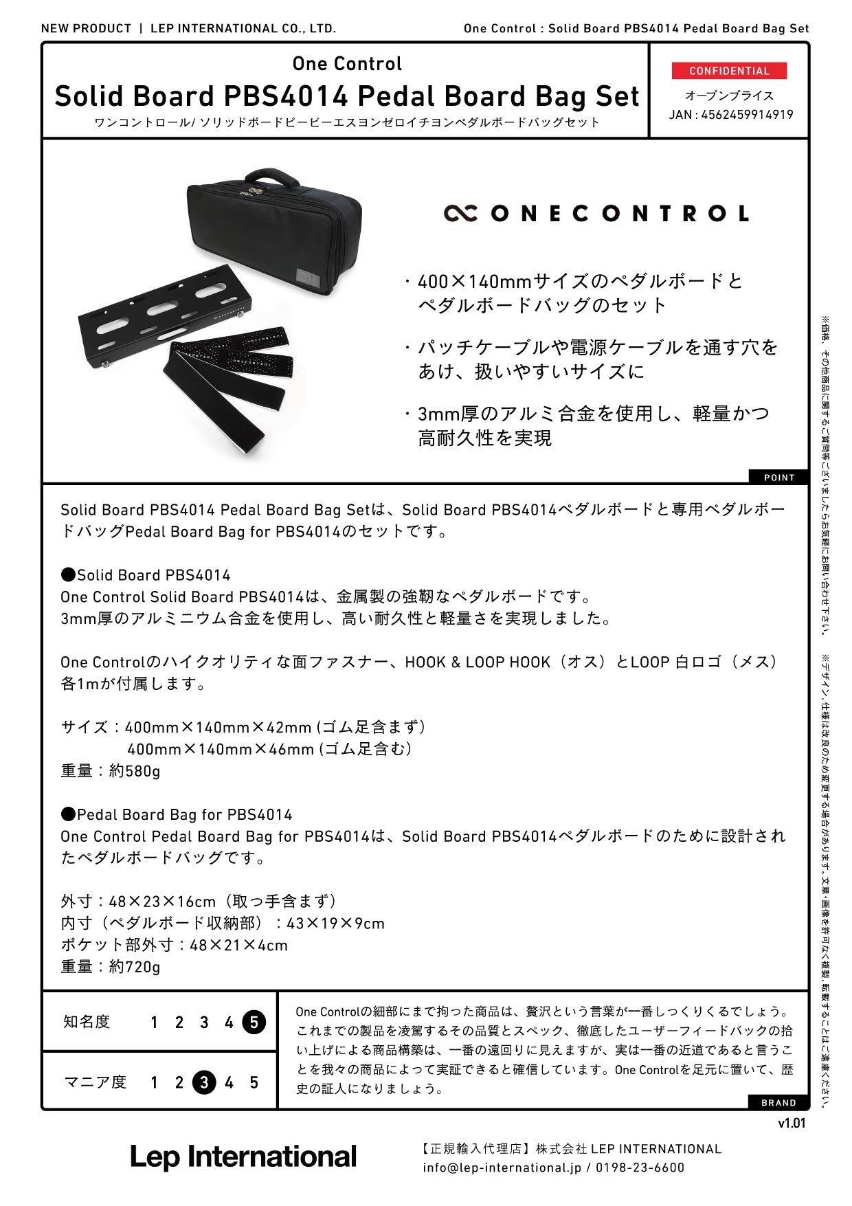 また、Solid Board PBS4014 Pedal Board Bag Setは、Solid Board PBS4014ペダルボードと専用ペダルボードバッグPedal Board Bag for PBS4014のセットです。