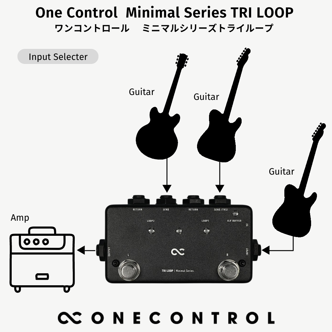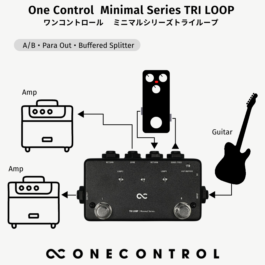 One Control Minimal Series TRI LOOPは、2つのエフェクトループを搭載するコンパクトなループボックスでありながら、1台の中に様々な機能を備えた新たな次元のエフェクターツールです。元のエフェクターツールとして進化させました。それが、One Control Minimal Series TRI LOOPです。